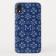 Este estuche de teléfono Navidad presenta un patrón de suéter azul y blanco con monograma. Personalízalo con una inicial.
