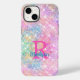 Funda De Case-Mate Para iPhone Monograma de imitación rosa de iridiscino blanco u