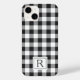 Estuche para iPhone Funda-Mate diseñado por personalizado que incluye monograma personalizado sobre un patrón rústico de protección de búfalo/gingham de color negro y blanco.