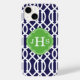 Funda De Case-Mate Para iPhone Monograma de la Marina Azul y Verde Moderno