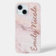 Estuche de teléfono monograma de mármol rosa de oro Rosa