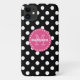 Funda De Case-Mate Para iPhone Monograma de puntos de polka rosa blanco negro
