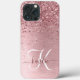 Personaliza fácilmente este diseño de estuche de teléfono de moda de moda con un purpurina brillante color rosa rosa bonito sobre un fondo metálico rosa roto.