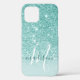 Funda De Case-Mate Para iPhone Monograma del Purpurina Girly Verde azulado