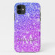 Funda De Case-Mate Para iPhone Monograma del Purpurina morado y rosado Girona