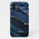 Funda De Case-Mate Para iPhone Monograma dorado geoda de ágata azul marino