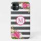 Funda De Case-Mate Para iPhone Monograma elegante Floral Black White Stripe