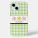 Comunícate con estilo con esta bonita funda de iPhone que presenta un clásico patrón de gingham verde, hermosas flores rosadas y amarillas, lunares juguetones y una monograma personalizable. Modifica el nombre para crear un regalo único para mujeres de todas las edades. Perfecto para cumpleaños, días festivos o cualquier ocasión especial.
