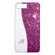 Caso bling fresco del smartphone con las chispas simuladas púrpura chispeantes del purpurina digital impresas en la cubierta, el color de fondo blanco del color de fondo que usted puede personalizar con su propia inicial conocida del monograma, y blanco usted puede cambiar. Dé a su teléfono móvil un estilo tan único como usted es.