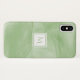 Un sencillo diseño de mármol sutil Barely There iPhone X Funda en verde claro con una moderna insignia cuadrada blanca que puedes personalizar añadiendo tu original monogramado a. Esto es parte de la colección Monograma de Mármol Sutil del Nilo Verde.