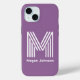 Este moderno funda de iphone 15 con monograma violeta es moderno y clásico. Presenta tu primera o última inicial en un tipo de letra atrevido y moderno y tu nombre en un tipo de letra clásico de coordinación en blanco. Es sencillo y minimalista, moda y elegante.