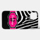 Funda De Case-Mate Para iPhone Monograma negro, banda de cebra rosa estuche para
