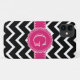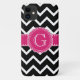 Funda De Case-Mate Para iPhone Monograma negro de flor rosa caliente