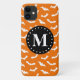 Un patrón de murciélago fresco, tradicional, inspirado en Halloween en naranja de calabaza y blanco, con un círculo de plantilla de letras iniciales en monograma blanco y negro.