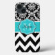 Funda De Case-Mate Para iPhone Monograma negro verde azulado de Chevron del