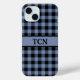 Estuche para iPhone negro y azul trenzado. Funda de búfalo, manada de leñador. Monograma con su nombre o iniciales. Disponible en todos los estilos de estuches telefónicos.