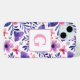 Funda De Case-Mate Para iPhone Monograma personalizado de flores púrpura pintadas