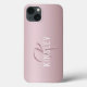 Girly Rosa Gold Rosa Monograma Nombre Teléfono celular en un fondo de brillo rosa. Este moderno y elegante estuche de teléfono móvil le ayudará a expresar su estilo único. Personaliza con tu propio nombre y monograma.