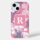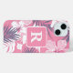 Funda De Case-Mate Para iPhone Monograma personalizado del hibisco rosa tropical