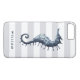 ¡El verano viene! Vestir un teléfono nuevo con este funda rayado de moda preppy que presenta un ilustracion azul de un caballito de mar vintage en azul sobre rayas náuticas en gris claro. Agregue su nombre o su monograma utilizando la plantilla. Más colores disponibles en nuestra tienda
