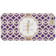 Esto se puede personalizar con su nombre y monograma en el diseño de la etiqueta con forma de corchete impreso en forma de cinta en el patrón púrpura y dorado del quatrefoil. Este estilo marroquí inspirado en la uva, blanco y dorado es perfecto para la mujer con un estilo perrito y moderno. Obra de arte © Chrissy H. Estudios, LLC. Todos los derechos reservados.
