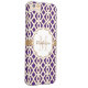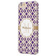 Funda De Case-Mate Para iPhone Monograma púrpura y quatrefoil dorado