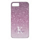 Elegante Purpurina morado Monograma iPhone 8/7 Funda.