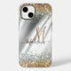 Funda De Case-Mate Para iPhone Monograma purpurina de imitación de oro plateado d