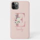 Moda y cartón inicial E, estuche para iPhone monograma para 11 Pro Max y muchos otros modelos. El diseño de la carta floral incluye una letra E rosa purpurina adornada con un ramo de color bonito de flores de marfil y rosa coral con follaje. Su nombre está escrito en tipografía de escritura con letras de color rosa y la plantilla de nombre está preparada para que usted la pueda personalizar. El diseño tiene un color de fondo rosa claro suave (para editarlo, haga clic en "personalizar" e introduzca la herramienta de diseño). Por favor, busque en nuestra tienda otras iniciales.