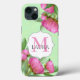 Funda De Case-Mate Para iPhone Monograma rosa Personalizado Peonias Botánicas Flo