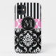 FUNDA DE Case-Mate PARA iPhone MONOGRAMA ROSADO FEMENINO DEL DAMASCO DE LAS RAYAS