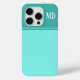 Funda De Case-Mate Para iPhone Monograma simple y Verde azulado con rayas azules