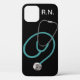 Tema de enfermería médica funda de smartphone en monograma genial diseñado para una enfermera registrada, también conocida como R.N. con estetoscopio sanitario en segundo plano y R.N. puede salir como se muestra o personalizar con sus propias iniciales de nombre de monograma.