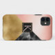 Elegante estuche para iPhone hecho en formas geométricas de mármol negro, Relieve metalizado dorado y lustre brillante en tres secciones. Un área de texto cuadrado en negro y oro, en el medio del funda, tiene un monograma de una sola letra para el rubor. Personaliza el monograma de una carta, para ti mismo o como una gran idea de regalo para ella.