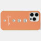 Añade un toque de calidez y elegancia a tu teléfono con este estuche para iPhone de melocotón personalizado, con una fila vertical de acentos de perlas luminosas y un nombre personalizado en un delicado guión blanco. Perfecto para personas de avanzada moda, regalos de fiesta nupcial o cualquier persona que ame el brillo suave con un toque personalizado.