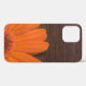 Mantén tu teléfono inteligente a salvo de caídas y golpes con un bonito Rústico Naranja Daisy y un Funda de equipo de madera de grano. Esta portada de teléfono personalizado con flores muestra una fotografía floral de una flor de margarita germánica naranja con fondo de madera de granero templado.
