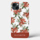 Esta elegante funda de teléfono con tema navideño cuenta con un hermoso patrón de vegetación pintada a mano en acuarela, flores de poinsettia y piñas. Encuentra artículos que combinan en la Colección Poinsettia de Navidad.