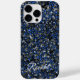 Maravillosa imagen en un estuche de teléfono personalizado de un patrón de estilo escandinavo con ciervos y otros elementos Navidades. Colores vivos en azul real, azul marino, gris y amarillo. Elementos 3D para que parezca más fresco. Haga clic en Personalizar para escribir su propio nombre o monograma o borrar el texto de ejemplo.