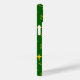 Este estuche de teléfono tiene un diseño Navidad de ángeles y estrellas dispersas por el diseño en un fondo verde.