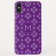 Este estuche de teléfono Navidad presenta un patrón de suéter morado y blanco con monograma. Personalízalo con una inicial.