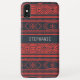 Este estuche de teléfono Navidad presenta un diseño de patrón rojo y negro con estilo de suéter. Personalizarlo con un nombre.