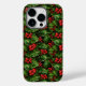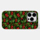 Navidades Holly Leaves Y Red Berries Seamless Pattern Funda-Mate iPhone 14 Pro Funda. Un patrón sin fisuras con hojas verdes y bayas rojas sobre un fondo negro.