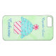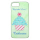 Sea festivo para los Navidades o durante todo el año con su estuche para iPhone personalizado con su nombre y &coito;cupcake love" palabras que usted puede personalizar a otras palabras. El bizcocho es de color turquesa y está salpicado de rociadores rojos y de caramelos de menta. El papel de cupcakes es de tira de menta roja y blanca. El fondo es una textura de pintura verde limón claro sobre blanco. Este diseño es arte original de Phyllis Dobbs y viene a coordinar productos en esta tienda. Personalizable completo.