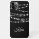 Luces de cuerda brillantes ilustradas y tu nombre en tipo elegante, acentúa este estuche para iPhone negro, haciéndolo un accesorio perfecto o regalo esta temporada de vacaciones. Este funda se puede personalizar fácilmente sin un monograma o un nombre si se prefiere.