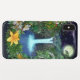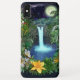 Hermoso diseño con flores tropicales, enmarcando una cascada en plena luna.