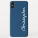 Este funda para el iPhone o el teléfono móvil de la galaxia Samsung es azul y verde trenzado con un nombre de guión blanco grande. ¡Muy Retro! Fácil de personalizar, o eliminar el nombre del guión de ejemplo. Todos los derechos reservados © 2018 Alan & Marcia Socolik.