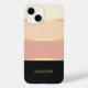Un elegante y moderno nombre monograma Funda-Mate iPhone 14 Funda con un amplio diseño de rayas doradas y colorido con colores de Moda Chica Boss de color crema, melocotón, rubor y negro. Personalice fácilmente este funda monograma con su propio nombre para convertirlo en su propio nombre.