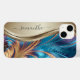 Funda De Case-Mate Para iPhone Nombre Manuscrito Azul Fractal Moderno Dorado