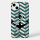 Estuche Chevron Geométrico Nautical Name Phone - añada tu nombre a este hermoso estuche de teléfono náutico.