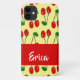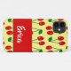 Funda De Case-Mate Para iPhone Nombre personalizado de cerezas rojas en amarillo